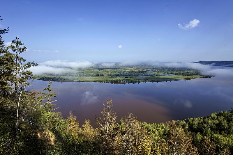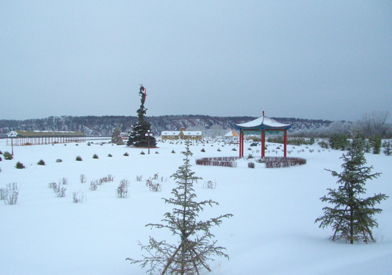 月亮湾位于开库康乡黑龙洞东南5公里的黑龙江畔,登山一观,壮丽无比,好似一轮明月嵌在青山黑水之间,故名月亮湾。月亮湾四季皆景,特别是仲秋时节,给人以震撼之感。