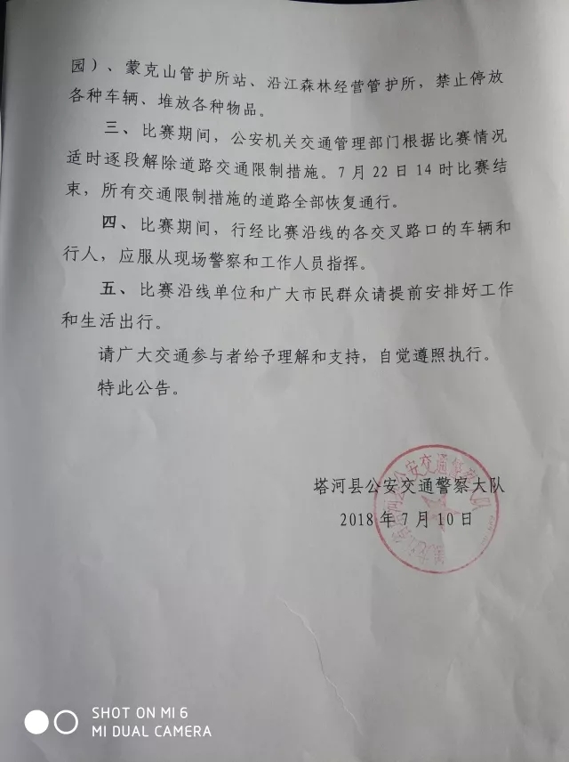 请您关注 塔河县7月20日至7月22日临时交通管制公告