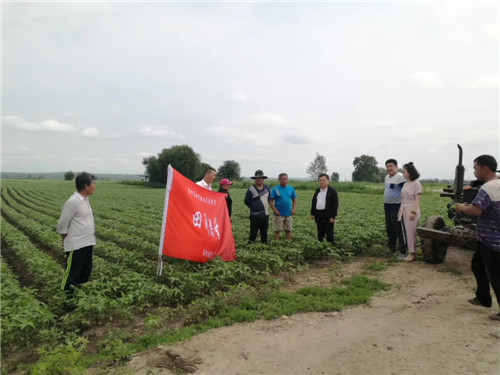 最后,农林局党员服务队来到田间地头,为正在打药的农户讲解种植过程可能出现的问题,联合支部书记宋生一一为农户解答。